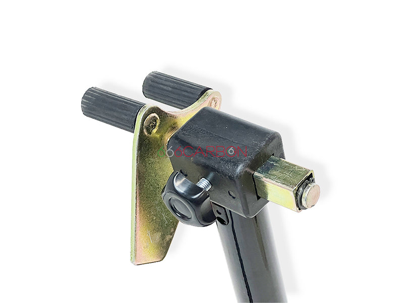 Ce chevalet soulève la moto de la partie inférieure des pieds des fourches amortisseurs, sans causer aucun dommage grâce à ses supports en caoutchouc doux mais durable.