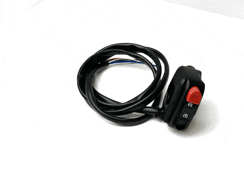 Interruttore elettrico per manubri da 22 mm, installazione lato destro, specifico per moto da strada, racing e custom. Realizzato in tecnopolimero nero ad alta resistenza, include cavo da 1.000 mm. Dotato di funzione ON/OFF (kill switch) e pulsante di avviamento motore. Prodotto in Italia, con qualità e affidabilità Domino. Connettore finale non incluso, da adattare all’impianto esistente.